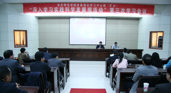 党委副书记、纪委书记殷红同志主持了学习会。会上,党委组织部部长陈光明同志传达了4月16日在铜陵学院召开的省属高校学习实践活动第六指导检查组所联系的高校学习实践活动领导小组组长和活动办公室主任会议精神。