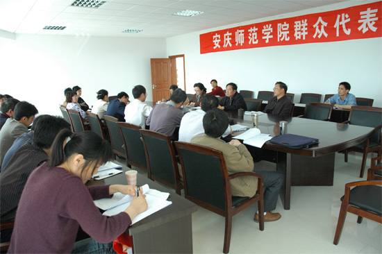 会上,来自基层,工作在教学、科研、管理、教辅第一线的群众代表们纷纷就前期调研和广大师生员工共同关注的热点话题和问题进行了富有针对性的发言。他们紧密围绕学校此次学习实践活动的主题,结合各自岗位和工作的实际,从“特色兴校”、“质量立校”、 “学科强校”、“和谐建校”、 “三大工程”(人才工程、名师工程、精品工程)、“开放办学”、“四成教育”、民生工程、领导班子建设、体制机制等十个方面,为学校的科学发展、又好又快发展建言献策。