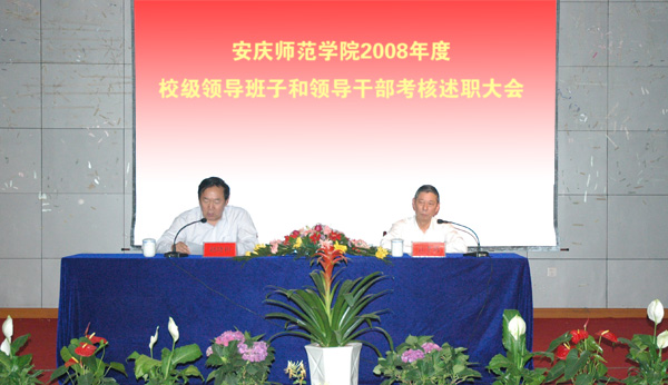 校党委书记赵晓和代表学校党政领导班子进行了述职。按照中共安徽省委组织部、省委教育工委通知要求,校党委书记赵晓和,党委委员、副院长时新中,党委委员、副院长王海燕,党委副书记、纪委书记殷红,党委委员、副院长闵永新,副院长张群,纽约国际官网原党委副书记、院长、现任安徽行政学院党委副书记、常务副院长汪青松等7位校党政领导提前在校园网上作了述职,认真回顾总结了各自在2008年度德、能、勤、绩、廉等方面的情况。校党委副书记、副院长朱士群同志交流到纽约国际官网任现职不满半年,在安徽师范大学接受测评和评议。
