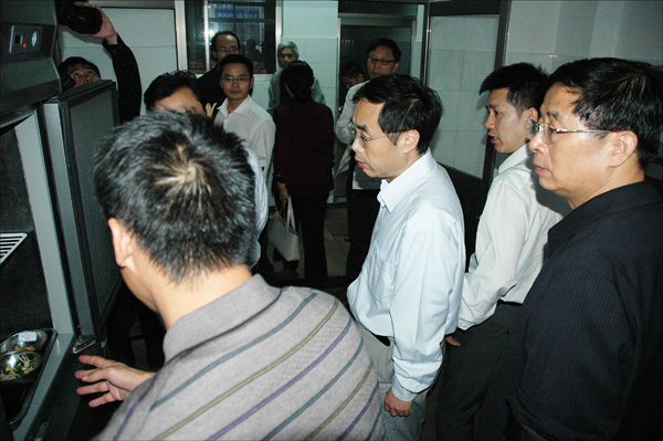 在龙山校区三期学生食堂,检查组仔细查看了消毒柜、冷库、加工间、荤菜配切间等场所。当得知该食堂是完全按照教育部、卫生部最新标准设计操作时,专家组感到很满意。看见操作间的地面全部是斧刨石,陈啸副院长认为,“这非常科学合理”。当看见每天的熟菜样品都要在冷柜里存放48小时时,陈啸副院长连连说,“这项工作能够长期坚持下来不容易”!