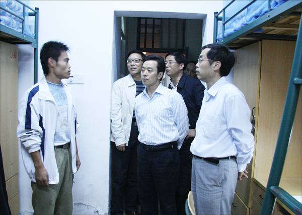 检查组实地检查学生宿舍