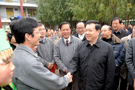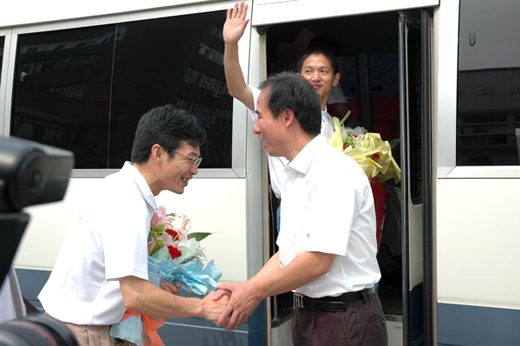 10月25日,安徽省省长王三运来到松潘中学看望安徽省支教队驻松潘中学的老师。王省长来到丁德健身边,握着他的手,关切地询问他:“到松潘后,生活可习惯?”丁德健说:“谢谢王省长关心!刚开始不太适应,经过几个月后,目前已经习惯这里的生活了。”“你是教哪个学科的?”“我是教化学的。”旁边的松潘中学校长高武说:“丁老师是教高三网络班的,丁老师接手后,学生的化学成绩提高很快。”王省长接着说:“那学生肯定很喜欢你呀!明年你走的时候学生会挥泪,你可能也要流泪。”丁德健说:“是的,现在我和学生之间很有感情,明年我们回去时,肯定会像您所说的一样,我们都舍不得分别的。”省长的赞许使得他更加安心地为灾区的教育、教学工作的恢复和发展而贡献自己的力量。