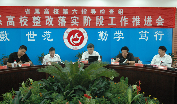 省属高校学习实践活动领导小组第六指导检查组副组长、省纪委派驻国防科工办纪检组长孙高产在会上指出,学习实践活动开展以来,在省委教育工委的指导下,第六指导组所联系的各校都紧密联系了各校实际,精心谋划,认真实施,活动扎实开展,取得了很好的成效,创造出了不少成功的经验。各校的整改落实方案问题查找比较实,工作投入比较大,让师生真正得到了实惠。他建议,在整改落实阶段,各校要加强领导,把握好学习实践活动第三阶段的进度,会后要结合实际抓好落实工作;各校要继续做好回头看、补缺补差工作,认真修改完善整改落实方案,精心组织、安排,坚持标准、保证质量,完成好规定动作和有特色的自选动作。