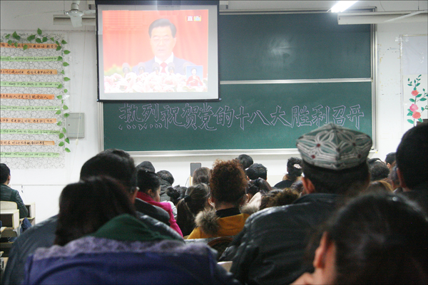 在收看现场,同学们也纷纷表达了他们的学习体会。同学们表示,作为高校学子,要以十八大召开为契机,深入学习、领会十八大精神,充分利用党和政府提供的优质教育资源,最大限度的挖掘自身潜能,刻苦学习,掌握文化知识,成为德、智、体、美全面发展的社会主义建设者和接班人,为祖国的繁荣昌盛奉献青春。(文/钱 敏 图/陈 东)