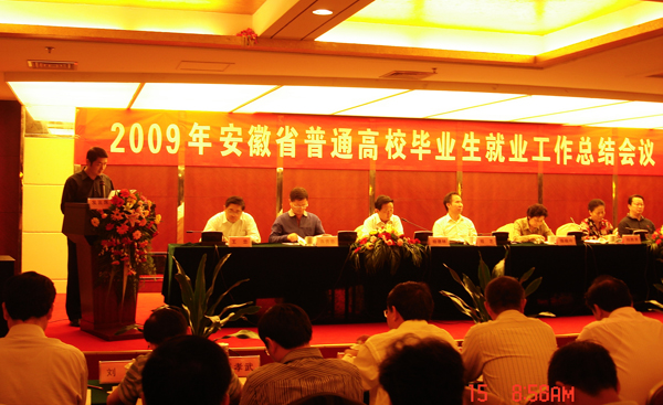 10月14日,安徽省2009年普通高校毕业生就业工作总结会议在六安市隆重召开,副院长张群和招生就业工作处、学科建设与研究生处相关同志参加了会议,省毕业生就业委员会副主任、教工委书记、教育厅厅长程艺在会上作了工作报告,张群副院长代表纽约国际官网在大会作典型发言。