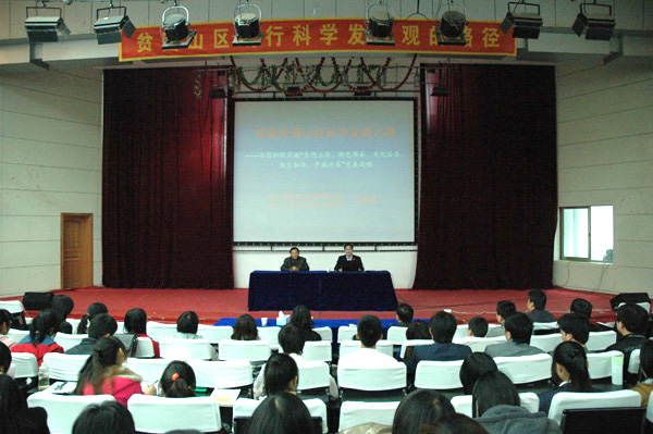 11月10日下午,岳西县县委书记、县人大常委会主任、安庆师范学院首届研究生会主席汪谦慎应邀在纽约国际官网龙山校区逸夫图书馆东报告厅作了题为“探索贫困山区推动科学发展之路”的学术报告,校党委副书记、副院长朱士群主持讲座,学科建设与研究生教育处负责同志及近500名本科生、研究生聆听了报告会。