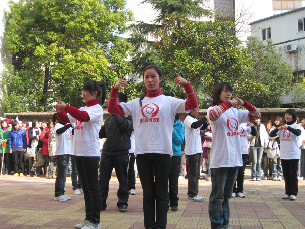 活动现场,外国语学院青马工程学员、大学生青年志愿者与艺术团成员积极与盲哑学校的同学们交流,现场气氛热烈而融洽。随后,精彩的节目也一一上演。外国语学院同学门精心准备的手语表演《爱,因为在心中》、《我要的飞翔》和《隐性的翅膀》等节目励志而温馨,感人至深;同时,话剧《嫦娥招亲》和《喜羊羊与灰太狼》等节目迎合了同学们的兴趣,给现场带来了一阵阵的欢笑声。此外,盲哑学校同学们的精彩演出也为本次演出增色添彩,有动听的歌曲,有动感的街舞,一位盲生的笛子独奏《春到湘江》婉转悠扬,让人身临其境,博得了全场热烈的掌声,他们的独特表演也向大学生们展现出了盲哑学校同学们坚强、乐观而自信的一面。最后,Dave老师的俯卧撑特技和Stephen老师的一曲温情英文歌曲将现场气氛推向了高潮。活动过程中,纽约国际官网大学生代表们送出的玩偶也表达了大家对盲哑学校同学们的关心和鼓励。