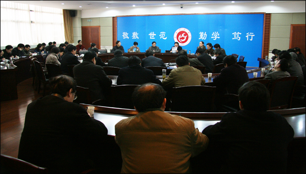 会上,党委书记赵晓和作了重要讲话。他从安全稳定工作、科技和学科建设工作、顶岗支教和质量工程申报工作、春节慰问及送温暖工作、继续教育工作、后勤服务工作等六个方面对假期工作进行了回顾和总结,通报了2009年度处级领导班子和领导干部考核结果,并对2010年及本学期开学初的主要工作进行了安排部署,提出了明确的要求。他强调,2010年是“十一五”规划的最后一年,也是学校夯实发展基础,加强内涵建设的重要一年。学校要全面贯彻党的十七大和十七届三中、四中全会精神,深入贯彻落实科学发展观,以国家实施教育改革年为契机,以质量工程建设为统领,以学科建设为龙头,以提升内涵为重点,推动学校事业在新的历史起点上科学发展。为做好2010年工作,赵书记提出了四点要求。一是要有强烈的责任意识,要按照各自的岗位职责,不折不扣地负起责任,高质量、高水平地完成2010年的工作任务。二是要有狠抓落实的工作作风。要在抓具体工作上下功夫,把工作着力点放在狠抓落实上,全力促进各项工作任务落到实处。三是要有团结协作的精神。要时刻从大局出发,认真贯彻民主集中制,自觉维护班子团结,充分调动各方面的积极性,努力在班子中形成互相尊重、互相谅解,互相支持、互相提醒,大事讲原则、小事讲风格的良好局面。四是要有勇于创新的工作思路。要根据形势的变化不断推进管理方式的创新,创造性地思考和实施管理工作,推动学校各项事业又好又快发展。