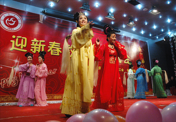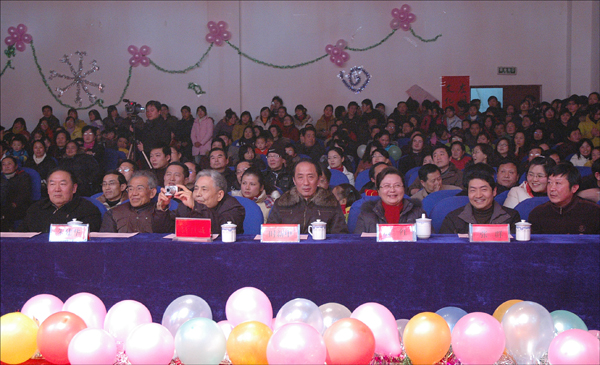 台上台下的师生在歌声和舞蹈里放飞心情,共同表达了对新年的美好祝愿,演出现场一片祥和欢腾。晚会在歌舞《中国的春天》的优美旋律中落下帷幕。(文/齐济友 图/陈东)