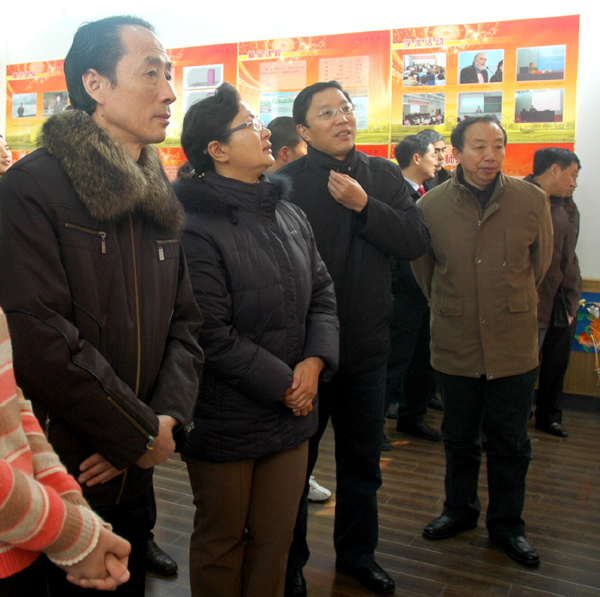 12月25日上午,冬日里的校风雨操场二楼南侧教育学院展厅里暖意融融,校党委书记赵晓和,党委委员、副院长时新中、党委副书记、纪委书记殷红,党委委员、副院长闵永新、党委委员、党办、院办、外事办主任、生命科学系党总支书记刘友忠、组织部长陈光明以及财务处、校团委、学生处、美术学院、资源与环境学院、人文与社会学院、音乐学院、计算机与信息学院等部分领导参观了教育学院创建十年成果展。教育学院主要领导陪同观看。