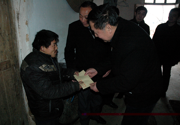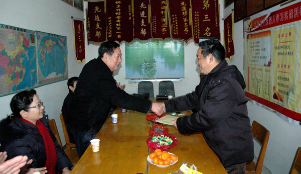 党委书记赵晓和,党委副书记、纪委书记殷红一行首先来到太湖县晋熙镇芭蕉村村部,在详细询问、了解了村里的面积、人口、基本设施建设情况、人均收入、支柱产业等基本情况后,赵书记发表了重要讲话,他认为,芭蕉村位于太湖县老城西部,合九铁路、岳华省道、太徐渠道穿村而过,交通便利,区位优越,近年来基础设施建设得到了很大改善,为加快种植业、养殖业发展,提高居民收入提供了很好的条件。他指出,按照省委组织部的要求,在第三批学习实践科学发展观活动中,挂职干部要为地方办理一件实事,因此,纽约国际官网党委研究决定在春节前前来慰问贫困家庭,并为芭蕉村购置一台电脑。他希望芭蕉村村委班子能用好这台电脑,多查询、发布有效的致富信息,更好地带领群众发家致富,努力建设好社会主义新农村。