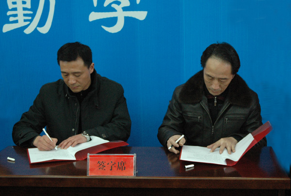 时新中副院长与胡玉美酿造食品有限责任公司蒋立胜副总经理在协议上签字