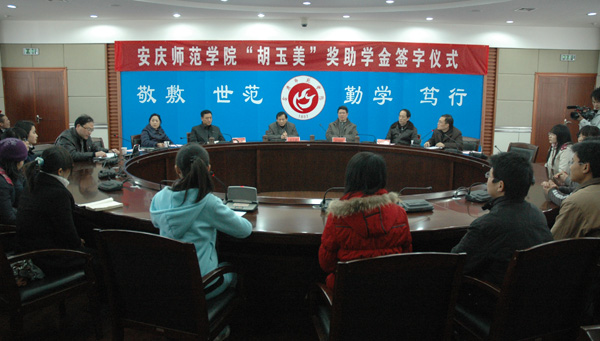 “……在此,我真诚地向胡玉美公司和学校说一声‘谢谢’。因为有你们的资助,我才能继续我的梦想……。在今后的日子里,我会更加努力,取得优异的成绩。”在3月10号下午举行的安庆师范学院“胡玉美”奖助学金签字仪式上,“胡玉美”助学金受助学生代表谢洁欣同学有感而发。安庆市胡玉美酿造食品有限责任公司董事长程华曙,副总经理蒋立胜,纽约国际官网党委副书记、院长朱士群,党委委员、副院长时新中,学生处、财务处、生命科学学院负责人,受助学生代表等60多人参加了仪式。