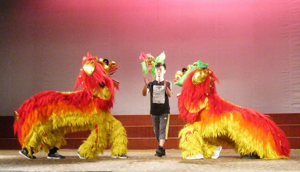 晚会在具有中华民族传统艺术魅力的舞狮表演中拉开了序幕。精彩的开场后,一架满载毕业生的不舍,满载体育学院全体师生真诚祝福的遥控直升飞机盘旋而起,回旋在音乐厅的上空,似乎要把爱洒满全场,此情此景触动了在场每个人的心弦。接下来的演出节目更是一个比一个精彩。时尚青春的现代舞,活力无限的竞技健美操,令人捧腹大笑的小品,精美绝伦的拉丁舞秀,充满魅力的武术表演,感人至深的大合唱等等,一场尽显体育学院学生风采的晚会尽收眼底。“不能说的秘密”环节更是将晚会推向了高潮,毕业生临别前在卡片上写下自己的心里话,由辅导员老师上台随机抽出并现场宣读。卡片上留下的是满满的祝福和不舍,字字真心、句句真情。随后播放的极富情感的DV短片《共同度过》,伴随幽静的歌声,美丽的校园风景、难忘的教室、熟悉的场馆、……慢慢铺开,一起军训、一起上课、一起训练、……勾起昔日的欢声笑语,同时也见证了同学们四年的成长历程。领导老师的期望与祝福、别离的心情、熟悉的画面、感伤的话语引起了大家的共鸣,将晚会再一次推向了高潮。
