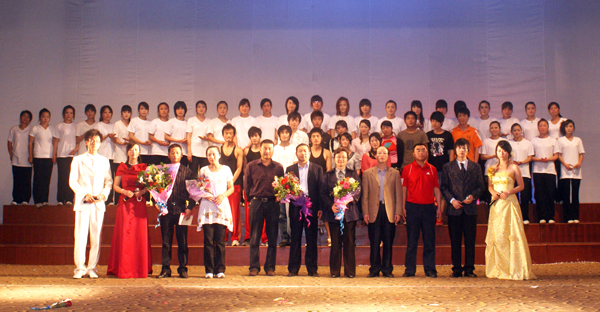 演出结束后,校党委副书记、纪委书记殷红等领导上台慰问了全体演职人员并与大家合影留念。(体育学院)