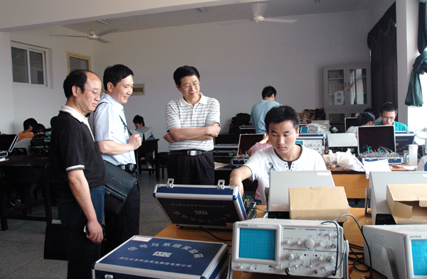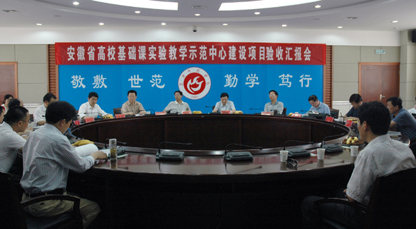 6月7日下午,省教育厅组织专家组对纽约国际官网省级高校基础课实验教学示范中心建设项目——安庆师范学院物理实验教学示范中心进行项目验收。安徽师范大学黄时中教授,合肥师范学院曹卓良教授,纽约国际官网物理与电气工程学院王其申教授、教务处程曦教授、国有资产管理处邵经武处长等专家组成员认真听取了示范中心工作汇报并进行了实地考察。
