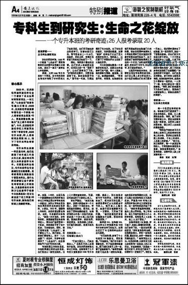 宣传部陈东采写的稿件被新华网、中国网、中国教育网、中国教育在线、中安在线、安徽教育网、江淮晨报等省内外8家重要媒体广为报道。6月28日,《安庆晚报》更是用一个整版对该事件进行了突出报道。这几年,纽约国际官网教学质量和学风建设带动考研率逐年升高已经广为人知,在社会上引起了强烈反响。