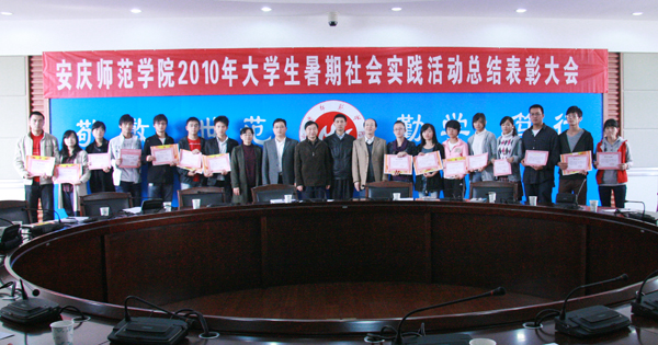 会上,教育学院、外国语学院、物理与电气工程学院等3个学院获得“优秀组织奖”,大学生骨干赴怀宁县马庙镇创先争优服务团等10个团队获得“优秀团队奖”,邹斌等10老师获得“优秀指导教师奖”,包志旺等48名同学获得优秀队员奖,查鹏飞等10名同学获得“个人返乡实践优秀奖”,由校学生会强坤、马珍珍撰写的《怀宁县马庙镇农村基层团组织建设调研报告》等14项成果获得“优秀调研成果奖”。