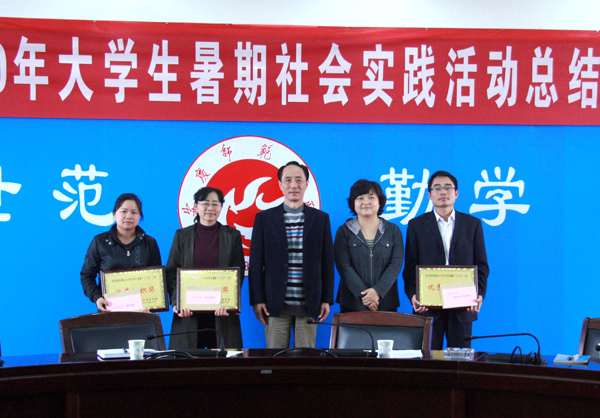 学生处副处长金文斌宣读了《关于评选表彰2010年暑期社会实践活动先进集体、先进个人和优秀成果的决定》的文件,团委有关同志运用PPT形式总结了2009年暑期“三下乡”社会实践活动的总体情况,相关部门领导、各学院分管学生工作的副书记分别为获奖指导教师和获奖学生代表颁奖。