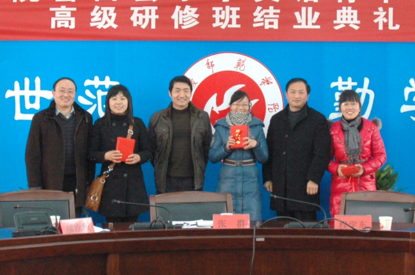 外国语学院院长郝涂根代表培训领导小组对为时一个学期的培训工作作了全面的总结。培训班班主任王先荣宣读了表彰决定。参训学员代表方存秀在结业典礼做了热情洋溢发言,表达了对为他们提供研修机会并给予悉心指导的领导、老师的感激之情,并表示要将所学知识运用到今后的教育、教学工作中,为岳西县小学英语教育做出更多、更大的贡献。(文/查国平 图/钱敏)