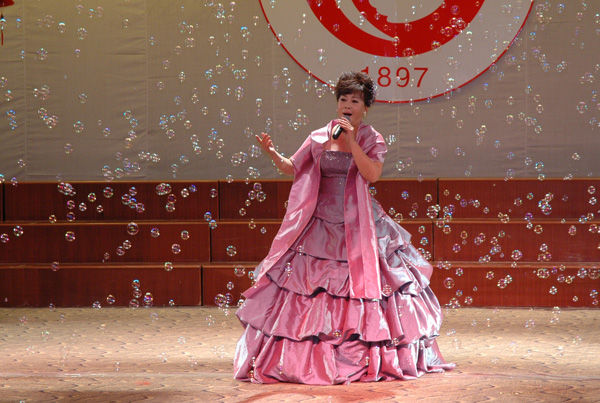 台上欢歌连连,台下掌声阵阵,演员和观众互相交融。男声独唱《今夜无人入眠》浑厚而激昂的旋律久久回荡在音乐厅里,充分表达了现场所有观众的喜悦心情。晚会在一曲高亢的《祝福祖国》中落下帷幕,传唱出对祖国、对学校明天的美好祝愿。