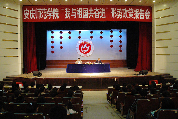 4月19日下午,党委委员、副院长时新中在龙山校区音乐厅作了题为《青年学生要正确看待当前形势,自觉维护和谐稳定的大好局面》形势政策报告。副院长张群出席并主持了报告会。学生处、团委负责同志、纽约国际官网青年马克思主义者培养工程培训班全体学员和政法学院、物理与电气工程学院学生建党积极分子350余人参加了报告会。