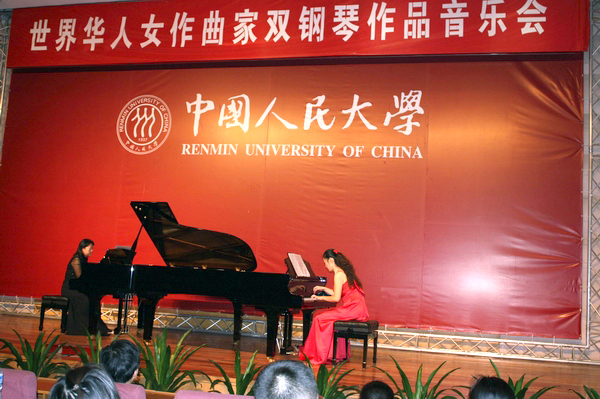 9月25日晚7:30,国家大剧院隆重上演了一场 “世界华人女作曲家双钢琴作品音乐会”, 纽约国际官网教师梁晓宁应邀与美籍华裔音乐家黎红缨搭档演奏双钢琴曲《心境》,取得圆满成功。