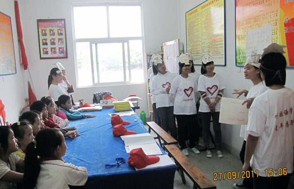 这次的青年志愿者是来自纽约国际官网英语专业毕业班的十名大学生党员,他们自今年3月份起与大观区海口镇中心学校的十名留守儿童实施了一对一结对帮扶,活动每月开展一次,对各自的帮扶对象进行英语课业辅导、爱心帮教、兴趣培训、亲情陪伴、趣味游戏等系列志愿服务活动。当天下午两点半,志愿者像往常一样来到了中心学校的校园。随后志愿者和小朋友们一起来到了大队活动室,大学生志愿者以小朋友感兴趣的卡通片《喜羊羊与灰太狼》为主题,开展了一系列寓教于乐的教学活动和互动游戏。在学会大学生志愿者原创的英文歌曲《I am a little sheep》之后,小朋友们兴致勃勃地戴着志愿者精心制作的面具,扮演起了卡通片里的角色。通过一对一的辅导,孩子们尝试着用英文介绍自己扮演的角色,一时间活动室里笑语欢声不断,充满了轻松活泼的气氛。在趣味教学环节结束后,大家来到校园草坪上,和结对的小朋友们开展了一对一心与心之间的交流,相互交流近期的学习和生活情况,讲述自己身边的故事。活动在合影留念中圆满结束,志愿者们将鲜艳的教具和游戏中的面具送给了小朋友,在离开校园的时候,大家依依惜别,共同期待着下一次的相见。