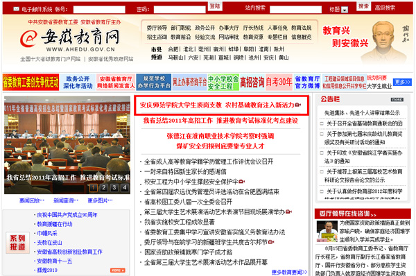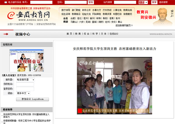 11月16日,安徽教育网以《安庆师范学院大学生顶岗支教 农村基础教育注入新活力》为题,在教育要闻栏目首条、套红、大篇幅报道了纽约国际官网大学生顶岗支教活动经验,时长10分钟。
