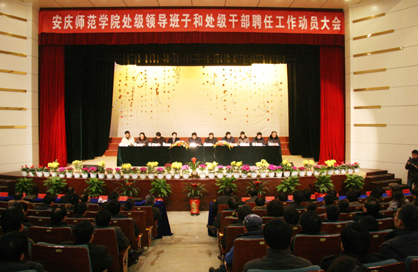 会上, 党委副书记、纪委书记宣读了《安庆师范学院处级领导班子和处级干部聘任工作实施方案》和《关于严肃干部聘任工作纪律的通知》。