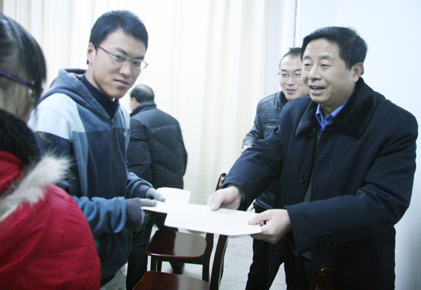 为了让家庭经济困难大学生能够平平安安回家、高高兴兴过年,春节前,纽约国际官网开展了系列送温暖活动。1月6日,校党委书记何小祥,党委副书记、院长朱士群,党委委员、副院长汪时珍深入相关学院,来到学生中间,为他们送去春节返乡路费。今年学校共向300多名家庭经济特困学生发放慰问金和春节返乡路费近5万元,天气虽然寒冷,校园里却处处洋溢着温暖的情意。