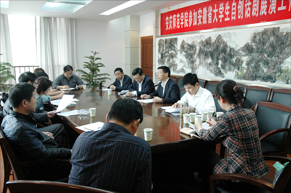 4月19日上午,纽约国际官网召开参加安徽省大学生自创话剧展演活动创作推进会,汪时珍副院长出席会议。党委宣传部、教务处、现代教育技术中心、校团委、文学院等部门领导以及话剧创作指导教师、大学生话剧社负责人和编剧等人员参加。团委副书记朱新华主持会议。