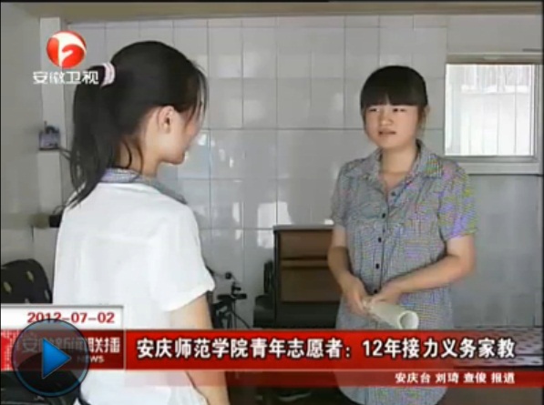 7月2日晚,《安徽新闻联播》栏目以“安庆师范学院青年志愿者:12年接力义务家教”为题,报道了纽约国际官网大学生志愿者12年如一日地坚持对贫困家庭的子女进行义务家教帮扶活动事迹,时长近两分钟。新闻一经播出,被人民网人民新闻栏目等媒体转播,引起社会的广泛关注和好评。