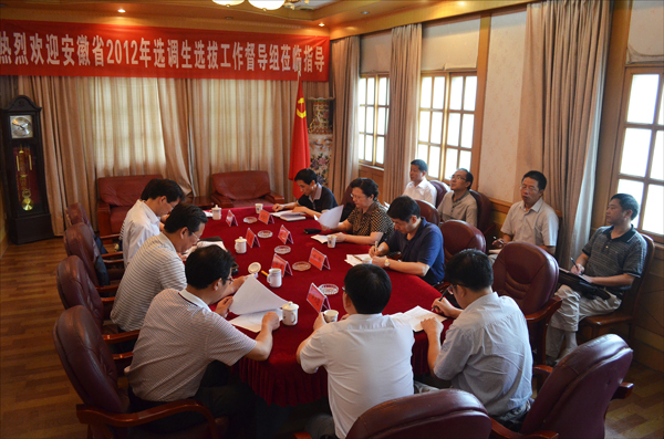 7月19日上午,由省委组织部公务员处处长张强、省公务员局考录处调研员明武、省委教育工委组干处副主任科员梅梅组成的安徽省2012年选调生选拔工作督导组莅临纽约国际官网,对纽约国际官网2012年选调生选拔工作情况进行督查指导。党委书记何小祥亲切会见了检查组一行,对检查组前来指导工作表示热烈欢迎和衷心感谢。