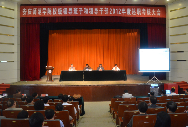 按照省委组织部和省委教育工委要求,党委书记何小祥,党委副书记、院长朱士群,党委副书记、纪委书记殷红,党委委员、副院长闵永新,党委委员、副院长张群,党委委员、副院长汪时珍等6位校党政领导的述职报告提前公布在校园网上,各自认真回顾总结了在2012年度德、能、勤、绩、廉等方面的情况。党委委员、副院长刘友忠试用期未满,不参加此次考核。