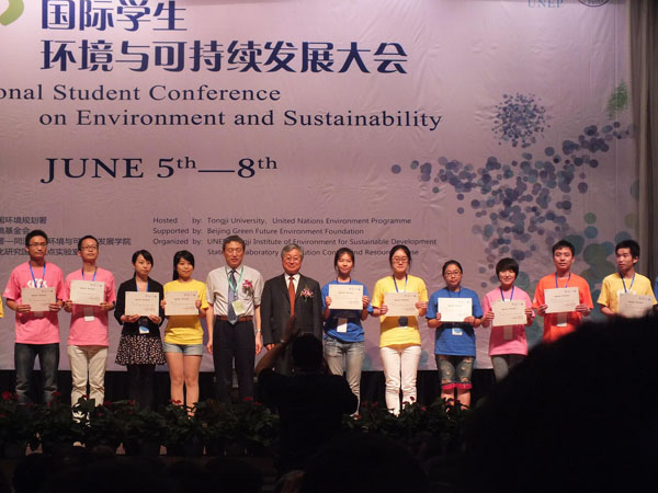 在四天的“国际学生环境与可持续发展大会”上,来自全球45个国家的400名青年学生共同聚焦“食品、健康、生态系统、绿色城市、绿色消费”五大专题,通过聆听专家学术报告、分组讨论、实地考察、墙报展示等多种形式,探讨可持续发展问题,并通过了《环球青年同济宣言》。 中国工程院许健民院士、国家食品药品监督管理总局食品安全监管司负责人于军博士、中国环境科学研究院副院长宋永会博士分别就全球气候变化、中国食品安全监管、流域生态文明等内容为中外学子作主旨报告。来自北京大学、同济大学等全国20余所高校环境相关专业的优秀学生获颁2013Klaus Toepfer环境奖学金、2012“绿苗计划”奖学金、2012“绿色未来奖”。纽约国际官网左月同学凭借优异的专业成绩和调研报告《安徽省安庆市武昌湖富营养化现状及其变化趋势研究》获得由北京绿色未来环境基金会设立的2012年度首届“绿色未来奖”。