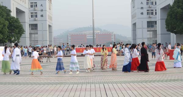 清晨旭日刚刚升起,龙山校区的敬敷广场上,随着古典音乐《第十三曲》演绎,十几位身着典雅质朴的汉服女生在广场中央翩翩起舞,她们将拜师礼与古典舞融合一体,将古代拜师的过程演绎的生动传神。“汉服古典舞是我们学院的一大特色,这也是以前所没有的,它体现纽约国际官网深厚的文化底蕴,有气度,有寓意!”参加表演的汉服社成员张姝歆说。“我觉得这个活动形式非常好,既表达尊师重教,又弘扬了中华传统文化。”物理学院的吴老师面带微笑,边说着,边拿起手机进行拍摄。广场一侧,几位男生笔走龙蛇,他们挥舞着毛笔写下了几个遒劲的大字,他们满含深情,用笔尖书写下对老师的祝福。教学楼中间还竖起了一块“许愿墙”,记录下同学们对老师的美好祝愿。