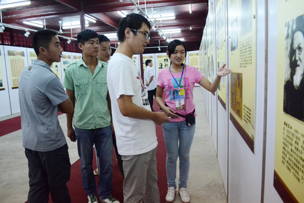 9月12日下午,在菱湖校区校史校情展览馆,一名女生正在为前来参观的新生进行讲解。在2013级新生入学报到之际,校史校情展览馆首次向社会公众开放。