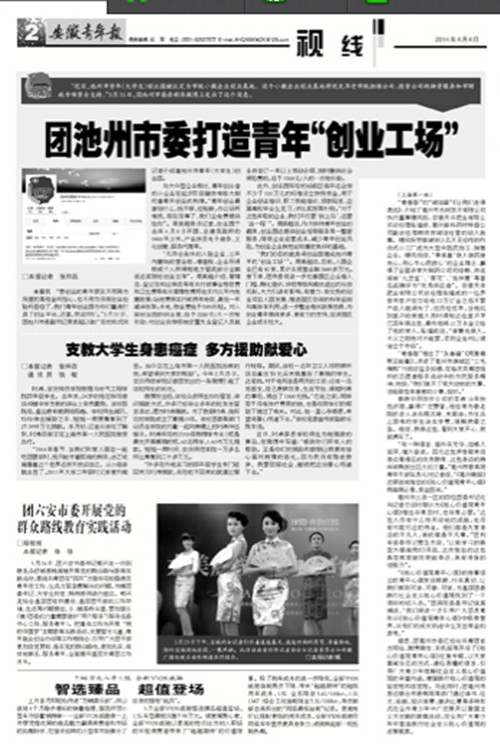 4月4日,《安徽青年报》分别在“视线”与“创业人物”专版,刊登和纽约国际官网有关的两则新闻。