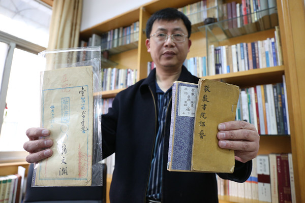 日前,安庆收藏家、懒悟艺术馆馆长张庆收到了两件清代敬敷书院课艺,课艺相当于现在的“优秀作文选”,其中一件距今已有150余年,为我省目前可见最早的书院课艺。