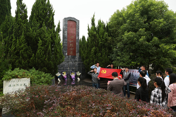 当天上午,在校党委组织部(党校)、宣传部、团委等部门领导的带领下,纽约国际官网学生党员、学生干部和国家奖学金获得者代表32人,来到了位于安庆市大观区海口镇海口小学的渡江烈士墓。他们在烈士墓前肃立默哀,向烈士敬献鲜花,深深三鞠躬,怀着无比崇敬的心情,深切缅怀革命先烈的丰功伟绩,祭奠烈士的英灵。学生党员代表们还重温了入党誓词。