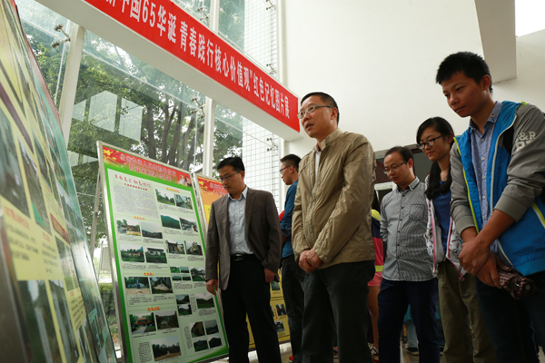 为了让广大师生能够更好地继承革命遗志,学校同时还在龙山校区开展了“庆祝新中国65华诞 青春践行核心价值观”红色记忆图片展。13块展板图文并茂地展示着安庆革命先烈的光荣事迹,从地方党组织的建立到抗日战场的开辟,一直到“打过长江去”的渡江战役,这些红色历史吸引了很多过往同学的驻足观看。地理科学专业13级的葛志强在每个展板前都仔细地阅读,他说:“我们的现在生活是数以万计的革命党人用生命和鲜血换来的,瞻仰他们的遗容和事迹,可以激励我好好学习。”