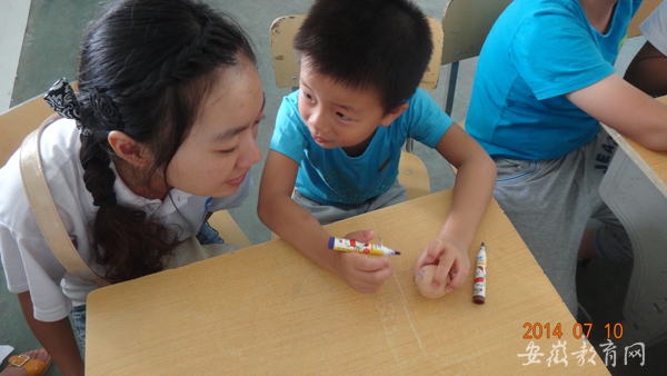 “‘三下乡’虽是我大一时做得最辛苦的事,但却是最有意义的事,因为我收获了一群真挚的孩子和队友。”陈欢笑着说道,历时8天的实践活动,志愿者们冒着酷暑,顶着烈日,但没有怨言,没想过放弃,选择磨练,选择奉献,同时也收获了感动和成绩。在巧手绘鸡蛋的活动中,每个孩子被要求在煮熟的鸡蛋上画画,有一个小男孩哭了,因为邻座的小朋友打碎了他画好的鸡蛋,那原本是他打算送给志愿的哥哥姐姐们的。