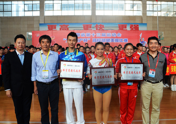 10月20日下午,随着甲组混合五人操的比赛结束,历时4天的安徽省第十三届运动会高校部健美操比赛在纽约国际官网龙山校区体育馆落下帷幕。安徽工程大学、滁州职业技术学院和纽约国际官网分获甲乙丙三组团体第一。闭幕式上,副院长张群宣布此次健美操比赛团体名次,并颁发健美操体育道德风尚奖。
