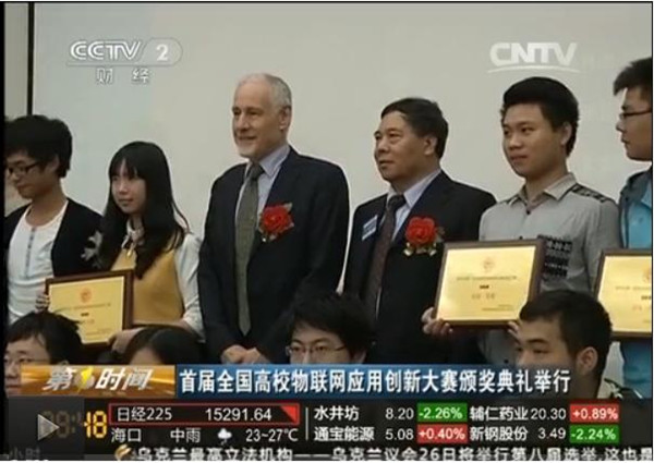 10月23日下午,“ACM中国颁奖典礼”暨“首届全国高校物联网应用创新大赛颁奖典礼”在郑州大学隆重举行。图灵奖获得者、计算机图形学和虚拟现实之父Ivan Sutherland,ACM(美国计算机学会)主席Alex Wolf,ACM首席执行官John White,教育部科技发展中心李志民主任,郑州大学校长刘炯天院士,ACM中国理事会主席刘云浩教授,ACM中国理事会和各地分会代表,“首届全国高校物联网应用创新大赛”评委专家及参赛师生共300多人出席了颁奖典礼, 美国计算机学会主席Alex Wolf亲自为纽约国际官网获奖选手颁奖。