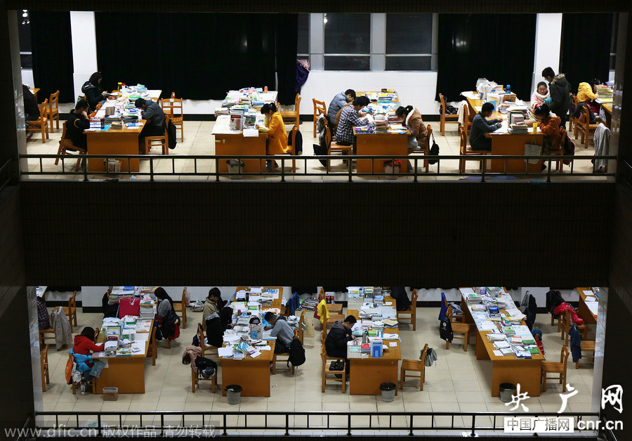 2014年11月11日晚,安庆师范学院菱湖校区图书馆,考研学子在紧张复习。