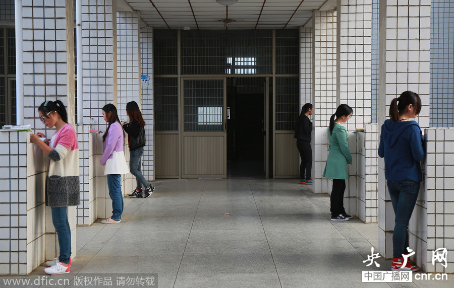 随着考试日子的迫近,他们更是争分夺秒!就连排队打开水的缝隙也在看书。