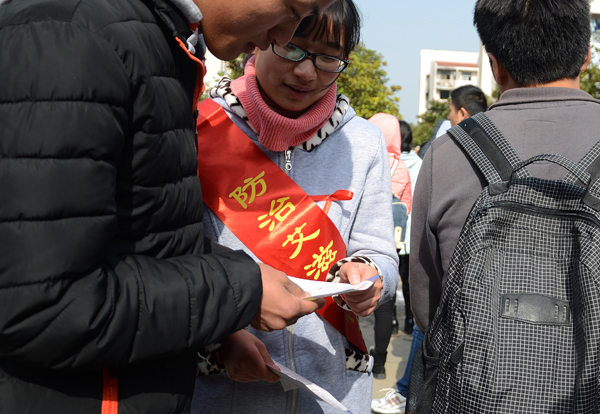 在详细的介绍后,来自疾控中心的工作人员更是采取了有奖抢答的方式,现场检验了同学们对艾滋病的了解程度。最后,全场同学共同观看了由著名导演杜琪峰拍摄的关于艾滋病的短片——《爱在阳光下》。“以前总觉得艾滋病离我很远,参加了这次活动后,我真的觉得多了解一些关于艾滋病的知识很有必要。”讲座结束后,来自外国语学院的沈同学认真地说道。(文/学生记者 钱成 图/学生记者 倪缪康)