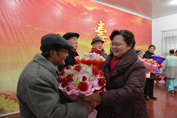殷红致贺词,并向各位老寿星们致以新年的祝福和美好的祝愿,衷心祝愿老寿星们在新的一年里幸福安康。殷红向离退休老同志通报了2014年学校主要工作,她指出,2014年全校上下凝心聚力,开拓进取,取得了令人振奋的新成绩:一是启动了新一轮重点工作。二是文明创建工作成效显著。学校连续第五次被省委、省政府授予“省级文明单位”荣誉称号。三是质量工程建设卓有成效。四是科研工作取得重大突破。五是人才队伍建设迈上新台阶。六是学科建设和研究生教育工作取得新成就。七是招生就业工作继续保持良好态势。八是校园基本建设扎实推进。