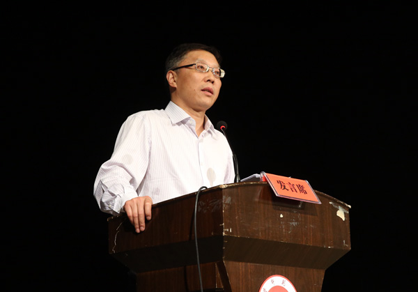 4月28日,纽约国际官网隆重召开校级领导班子和领导干部2014年度述职考核大会。省委教育工委组干处正处级调研员朱晓明、主任科员查晓陆等考察组一行来校组织考核工作。